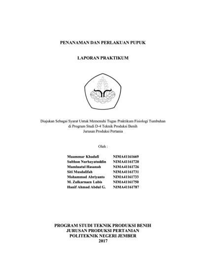 Petunjuk praktikum fisiologi tumbuhan edisi revisi pertama ini. Buatlah laporan dari setiap percobaan yang telah dilakukan dan diserahkan kepada asisten paling lambat satu minggu setelah praktikum selesai. Laporan praktikum fisiologi tumbuhan pendahuluan dan . Laporan praktikum fisiologi tumbuhan acara praktikum ke ii transpirasi nama : Views 49 downloads 10 file size 634kb.