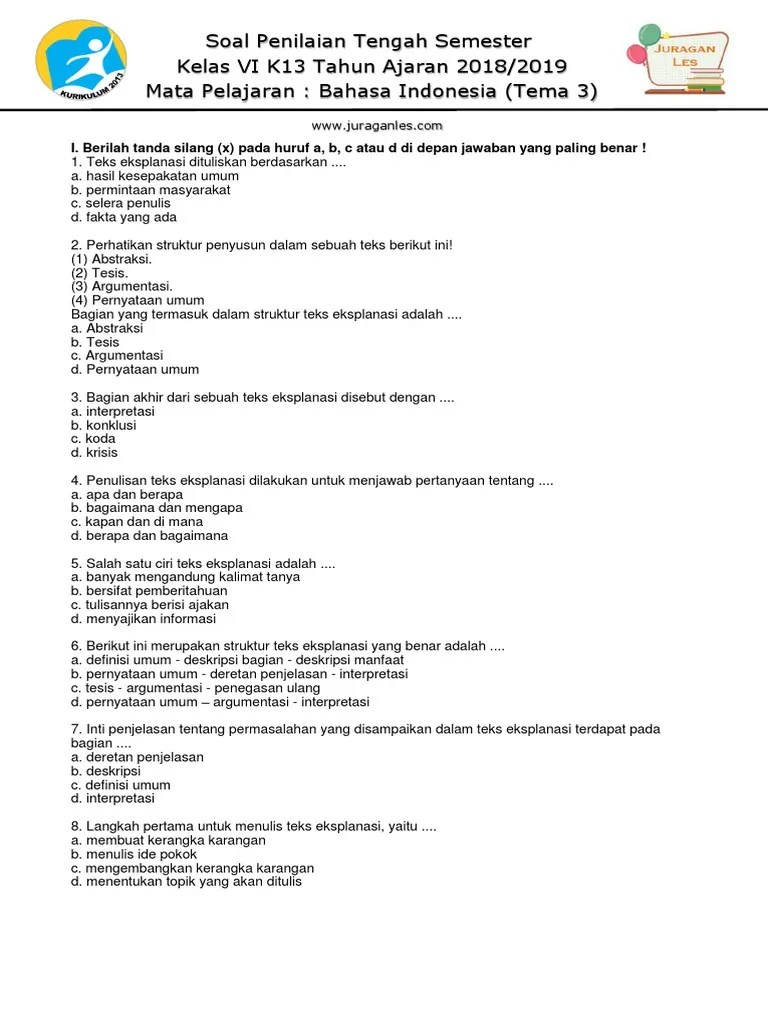 Soal Uh Teks Eksplanasi Kelas 8 Bahasa Indonesia / 50 Contoh Soal Pilihan Ganda Teks Eksplanasi Dan Jawabannya / Kumpulan soal novel dan kunci jawaban.